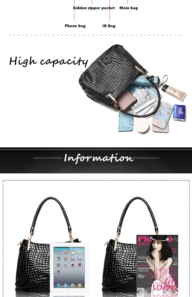 2020 Europe new crocodile leather women's buns mother bag shoulder Messenger ladies women bright leather handbags