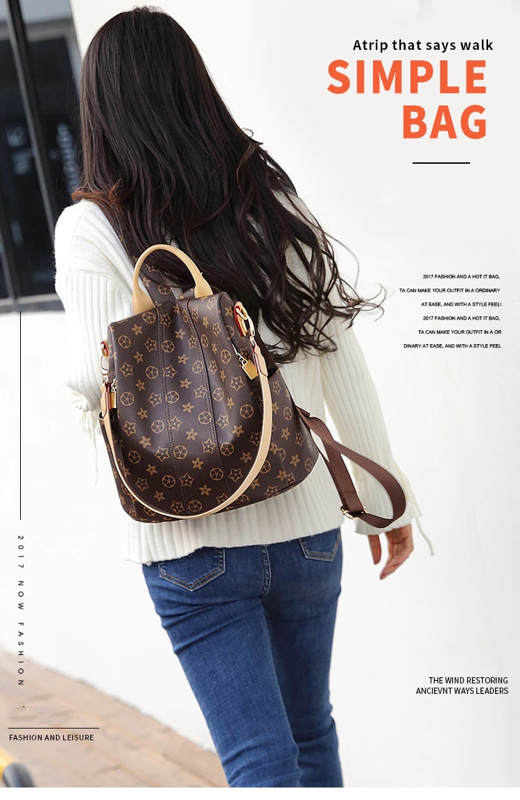 2020 New Bag Women's Leather Printing Women's Backpack Personality Soft Leather Travel Backpack