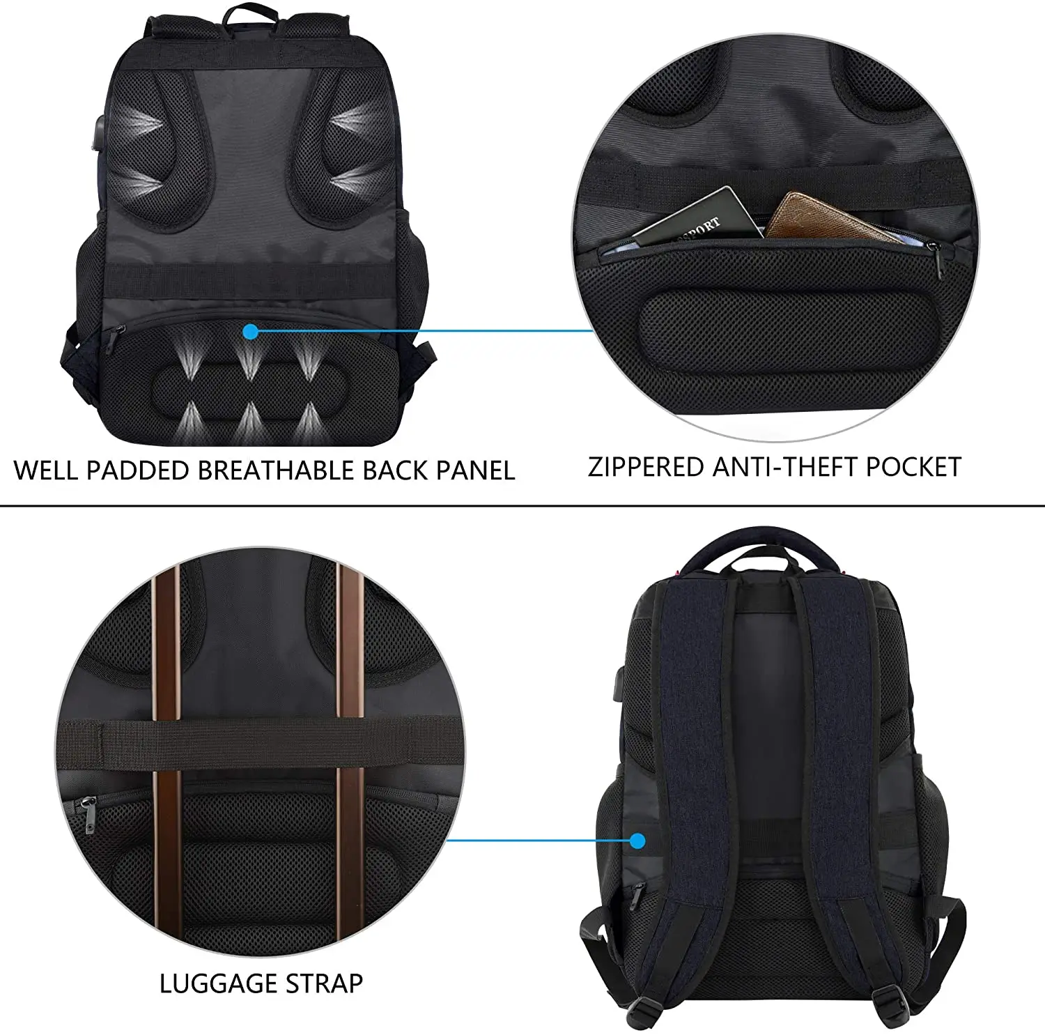 Item Name | 2021 Factory New design Fashion Lager Capacity Waterproof Backpack bag with RFID Pockets USB Charging Port |