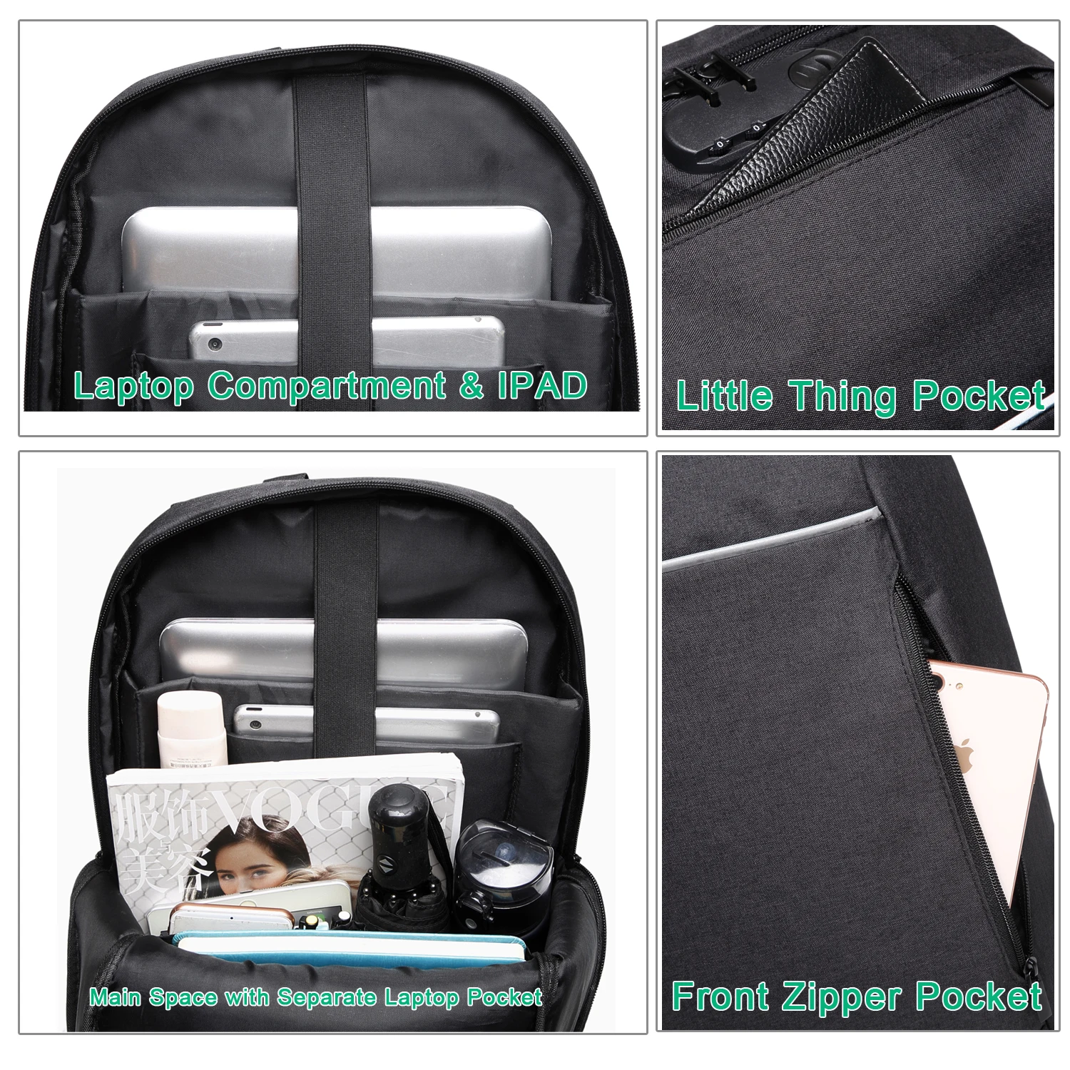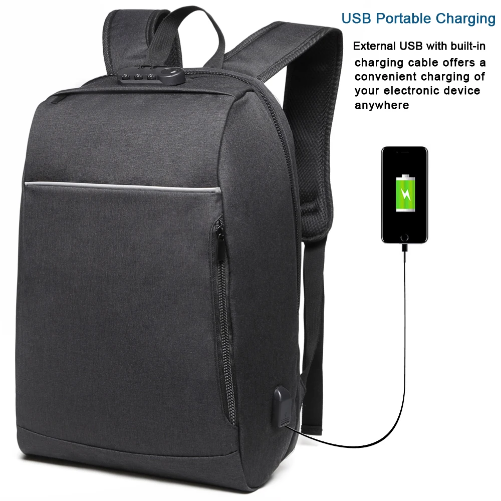 Fashion backpack for unisex school business bag laptop USB charger backpack