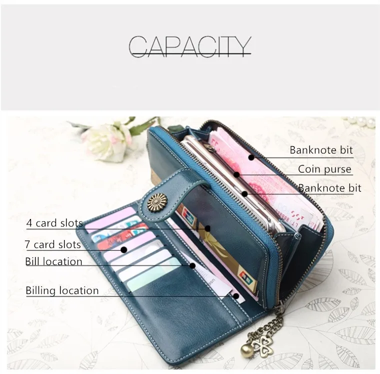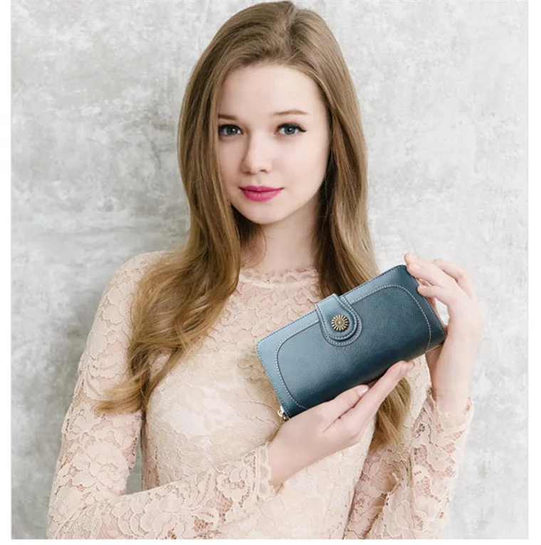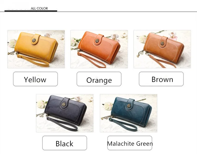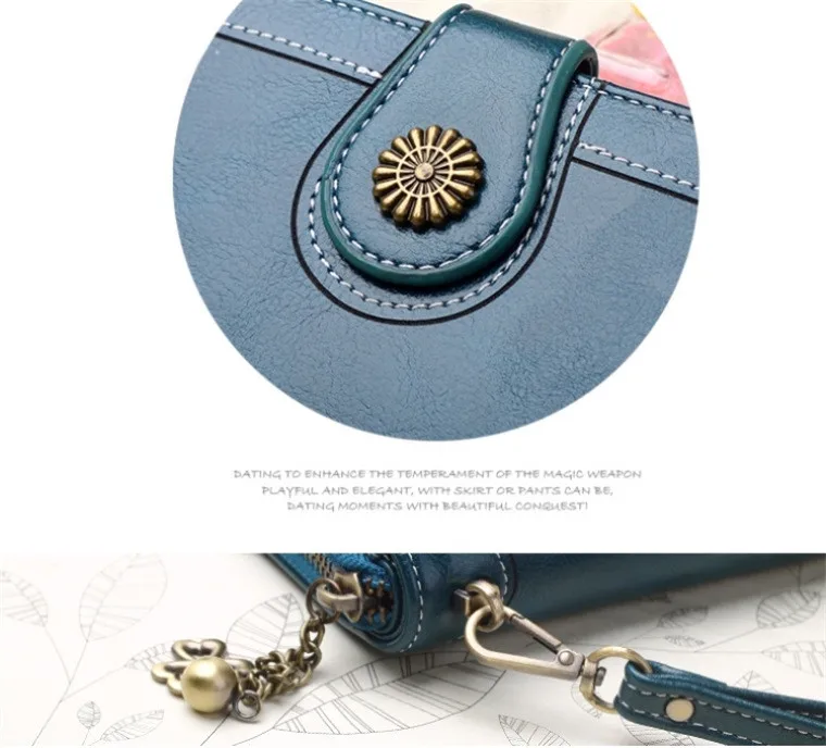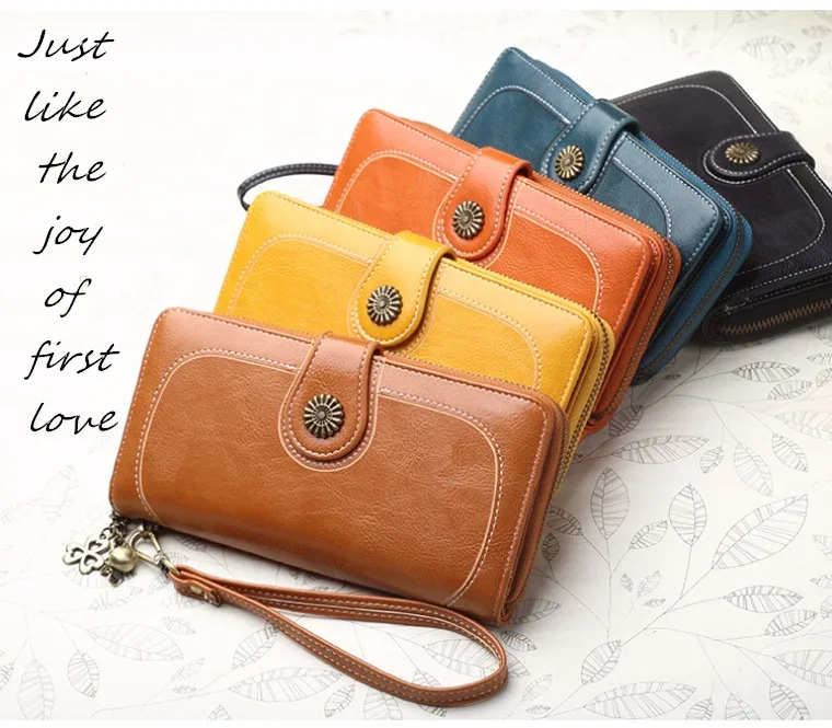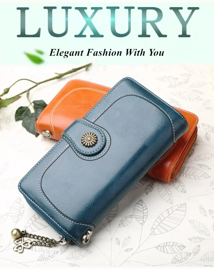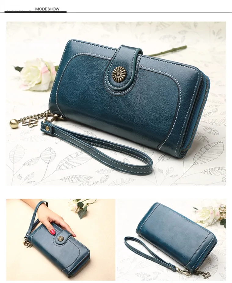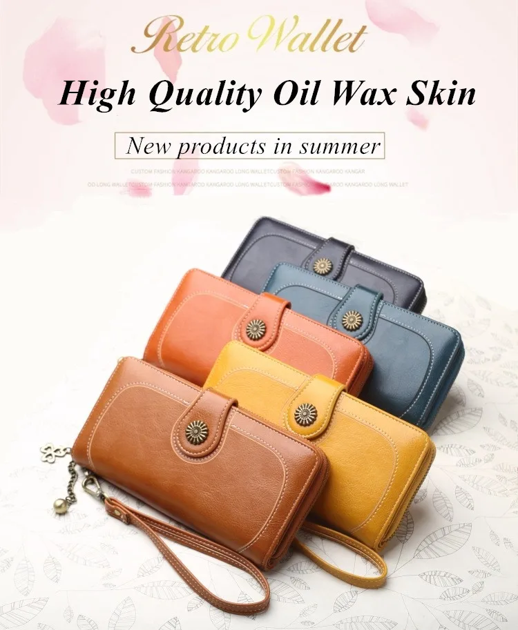 Hot Three Fold Zipper Oil Wax Leather Phone Bag Women Purse Wallet Clutch Cag Card Holder