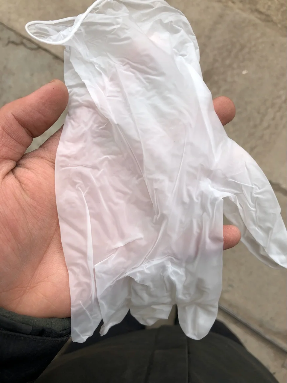 3. When taking off the gloves, flip up the gloves at the wrist and take them off to the fingers
