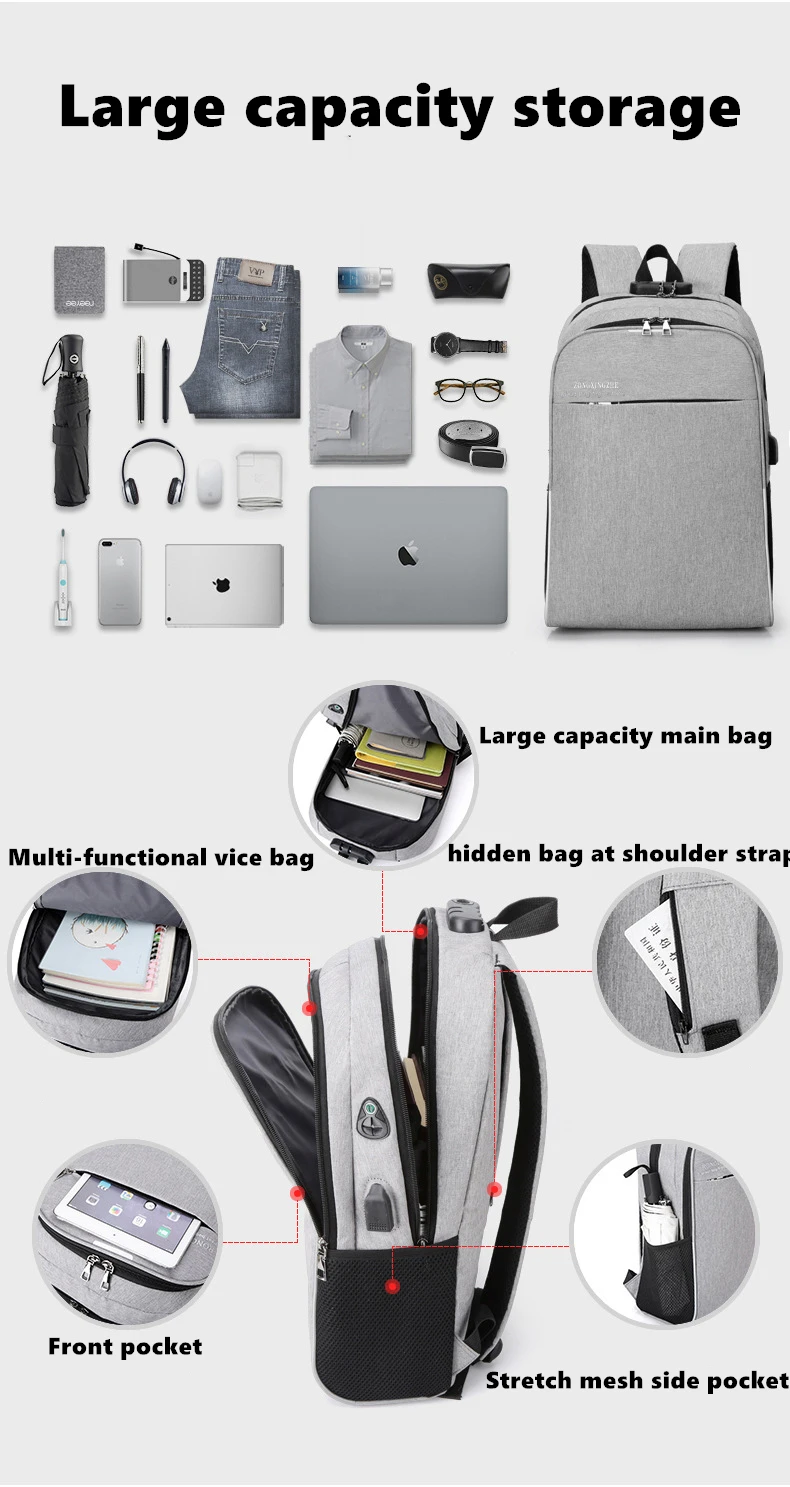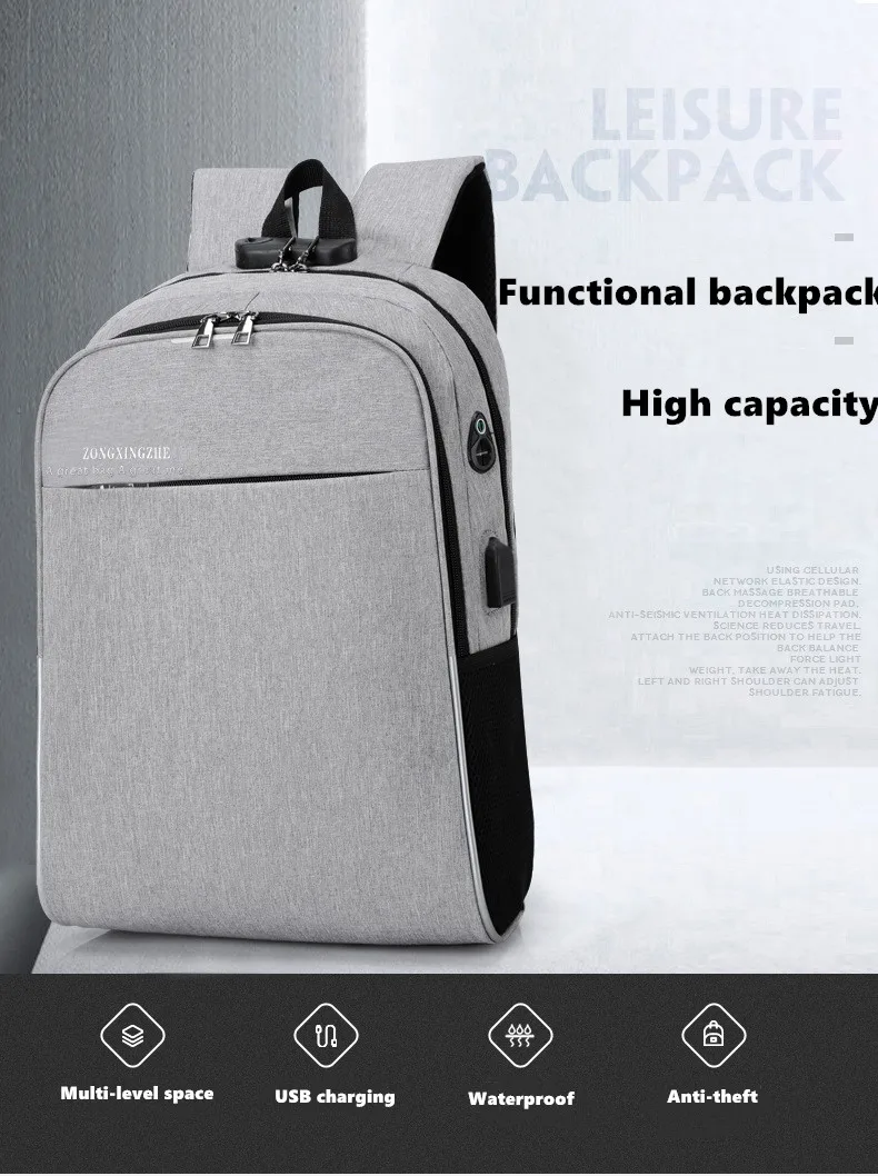 New Backpack unisex USB Charging Waterproof Business Casual Computer Bag 14-inch Anti-theft Backpack