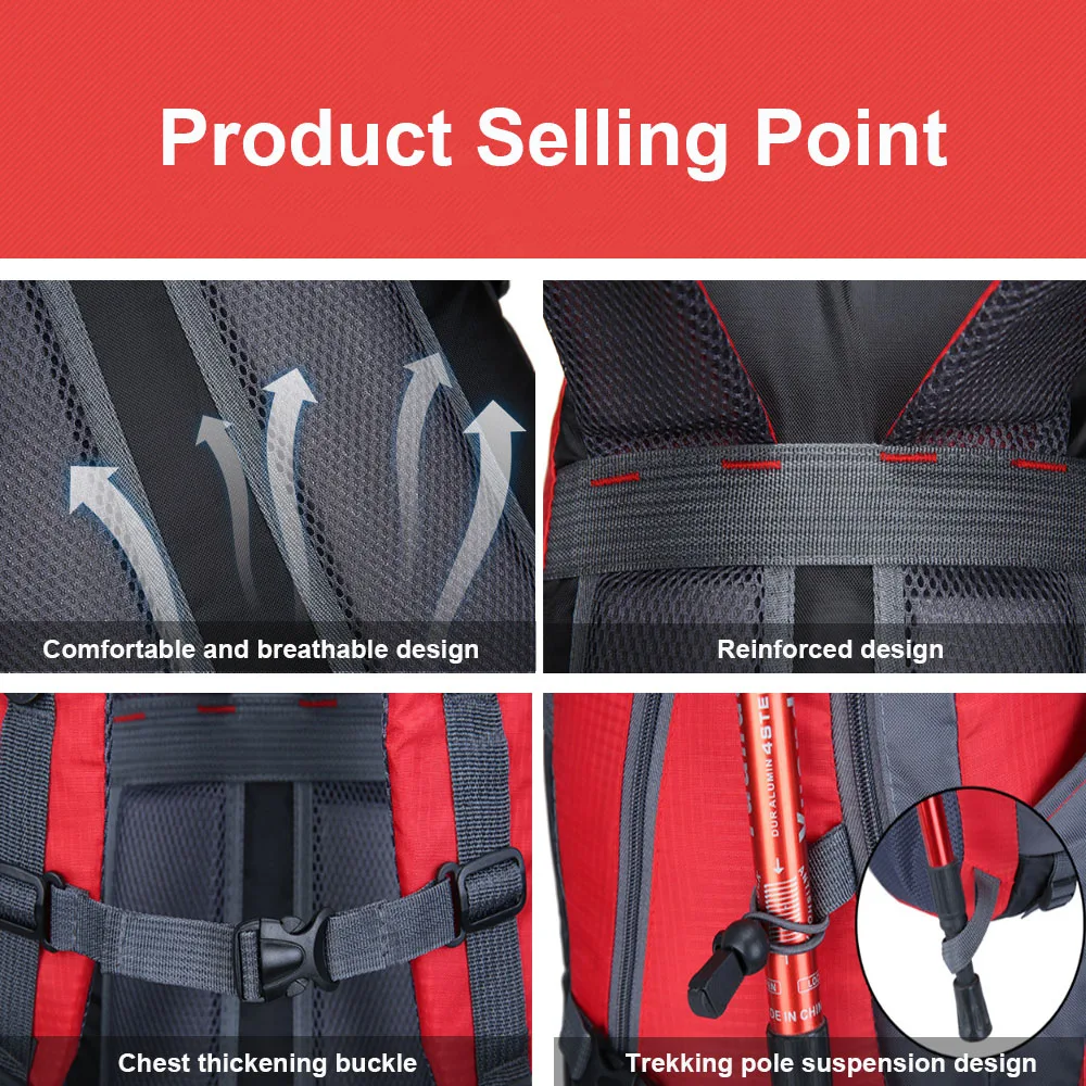 Outdoor Climbing Bag Colorful Solid Color Backpack 40L Large Capacity Hiking Bag Hiking Travel Camping Backpack