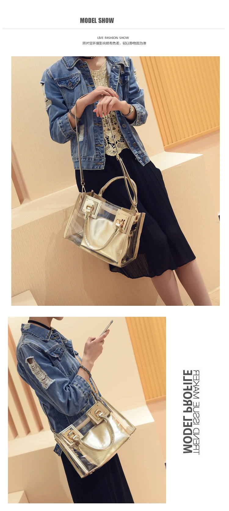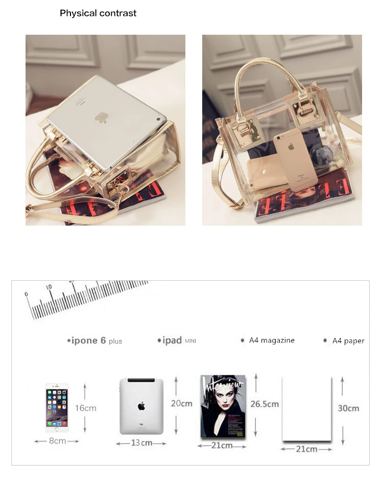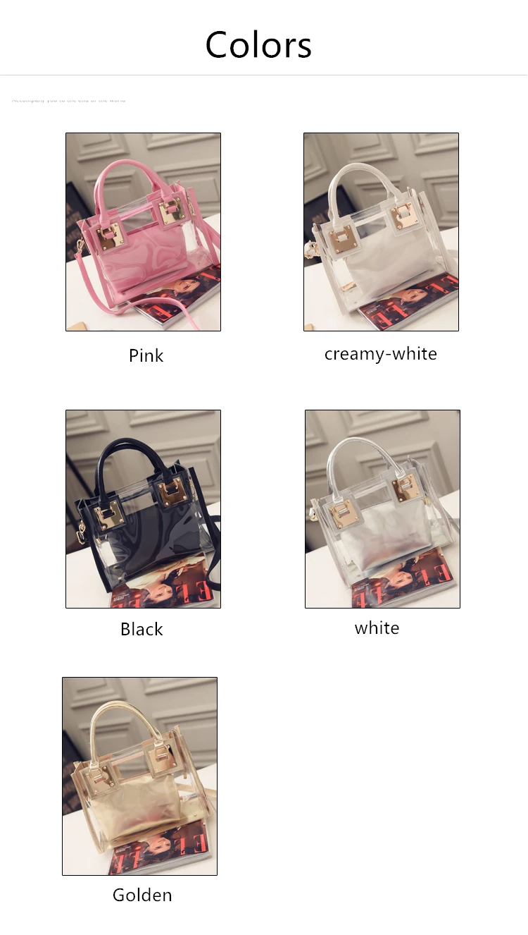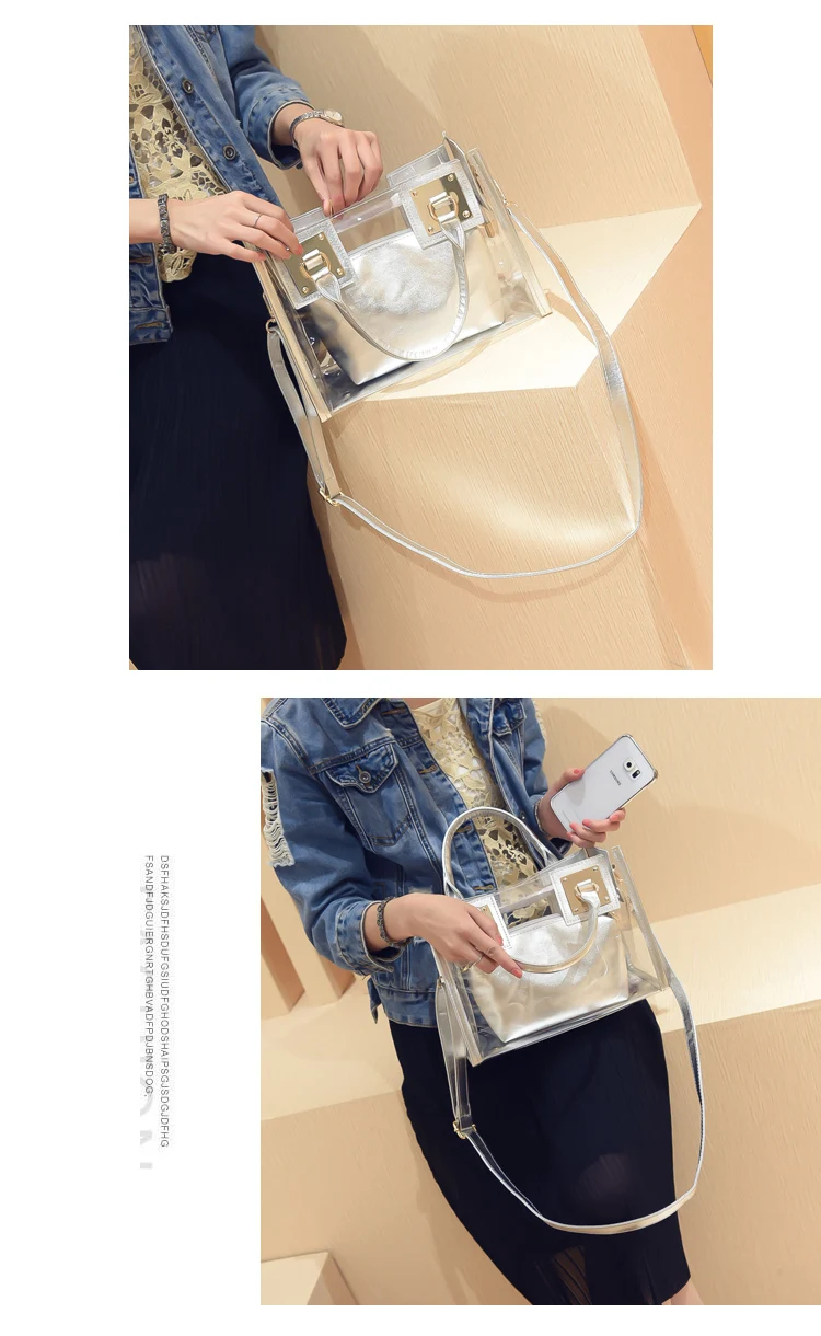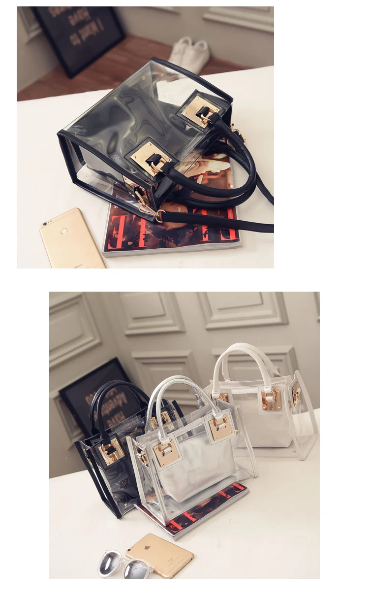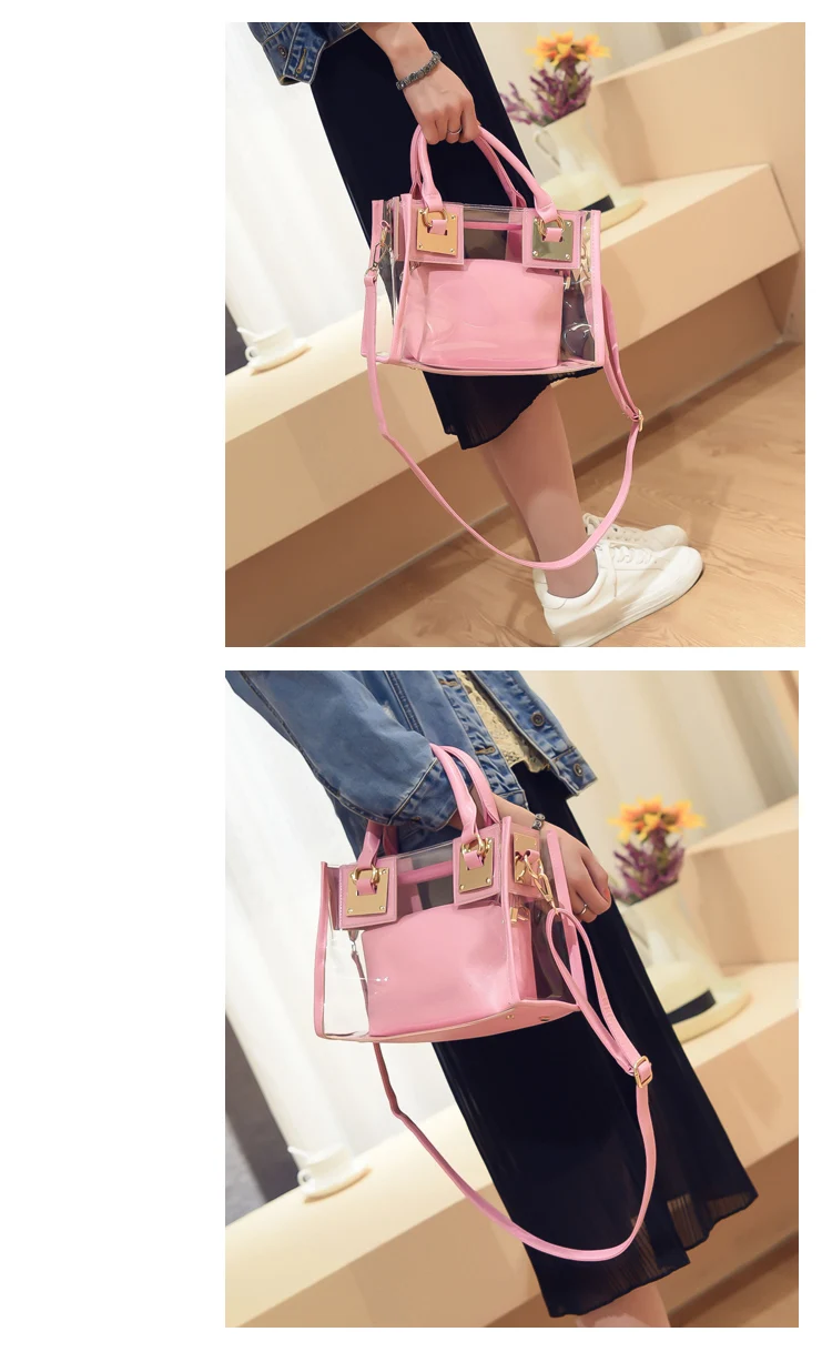 Summer 2pcs Women Fashion Shoulder Bag Clear Jelly Clutch Purse Transparent Handbag