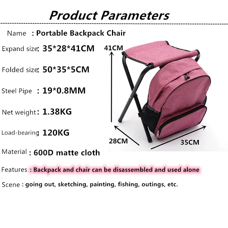 Upgraded Detachable Outdoor Sports Portable Mountain Fishing Backpack Chair Folding Camping Stool Fishing Backpack