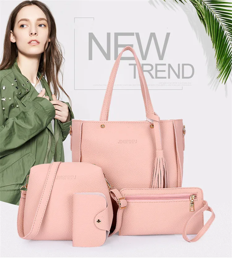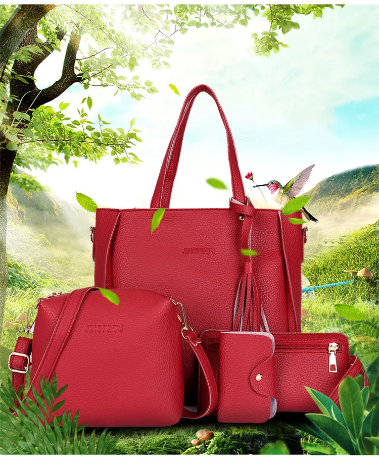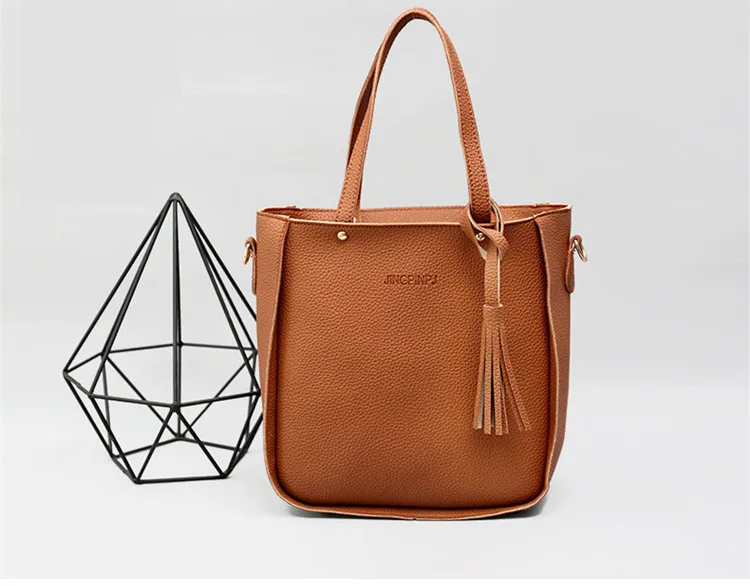 Women's Bag 2020 New Wave Fashion Lychee Pattern Set Mother-bag Tassel Crossbody Shoulder Bag