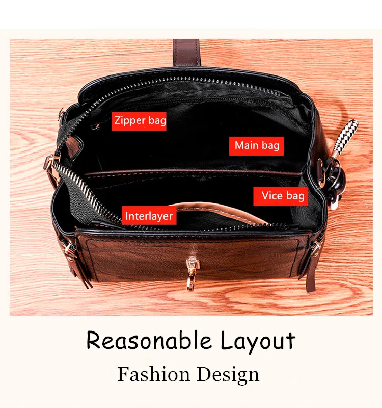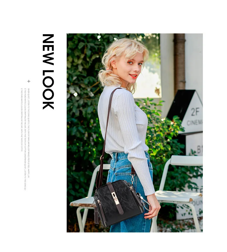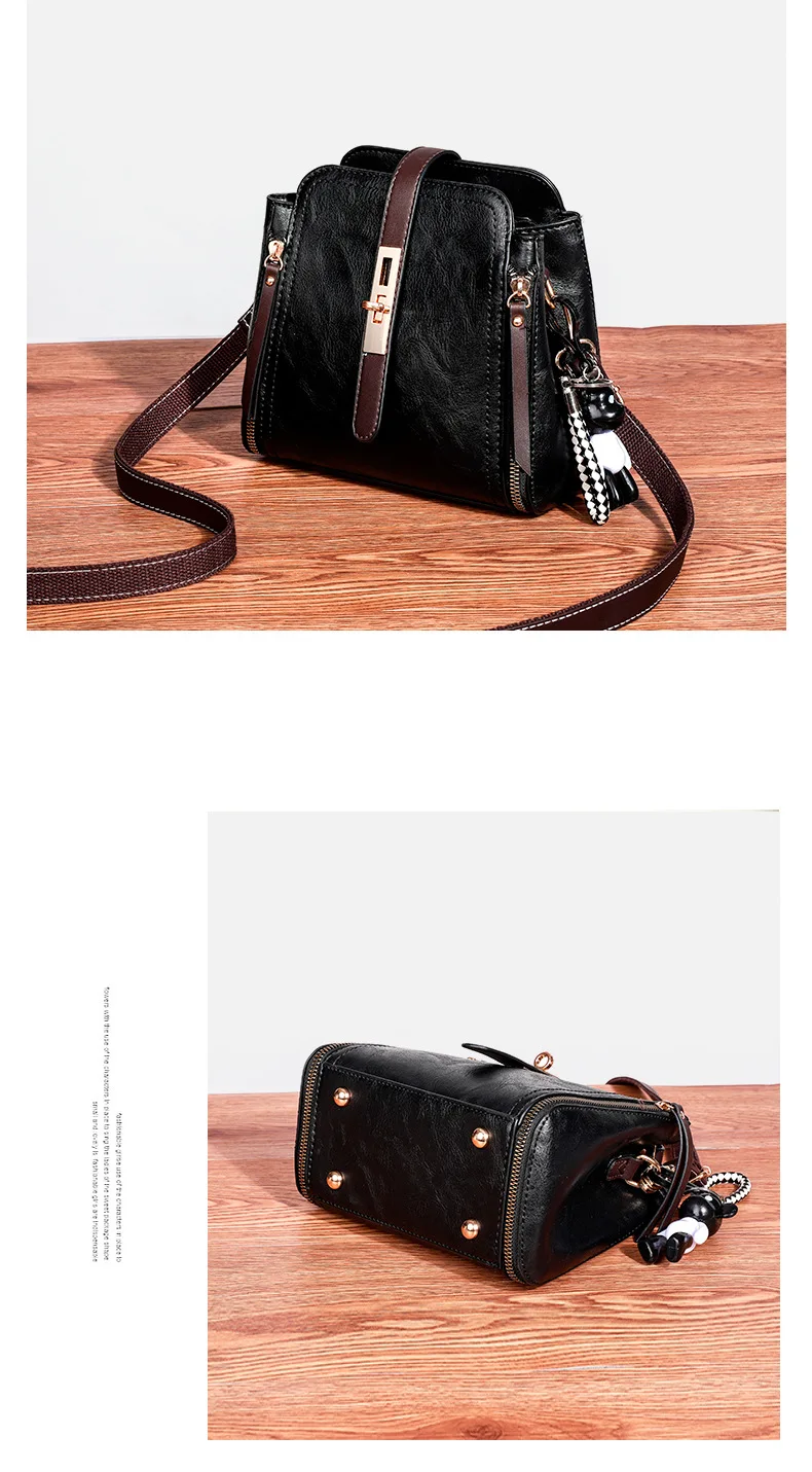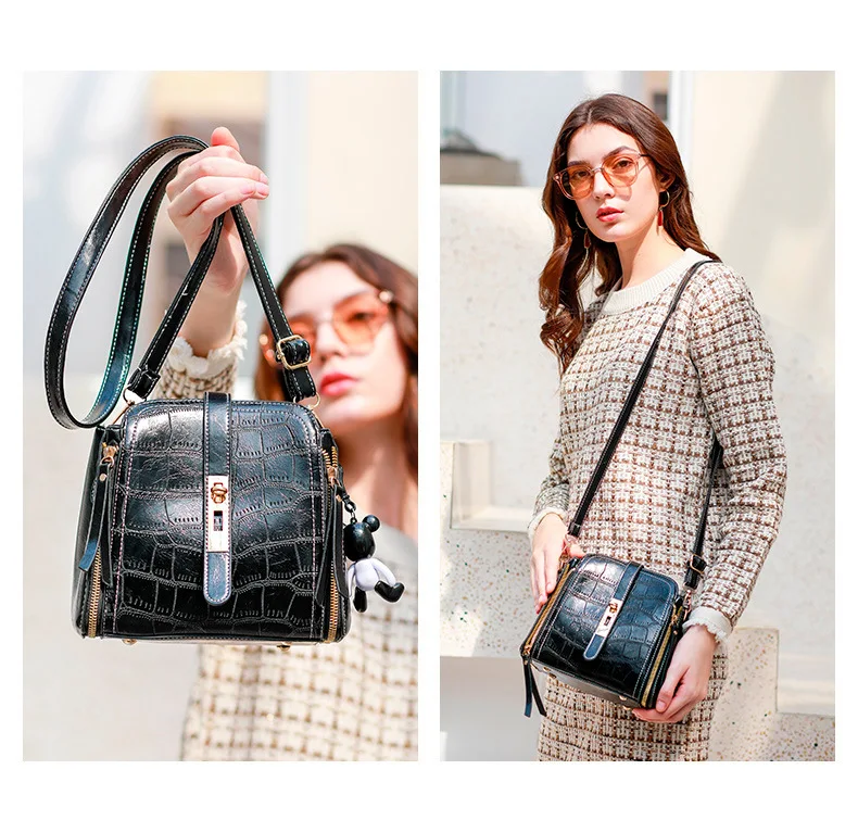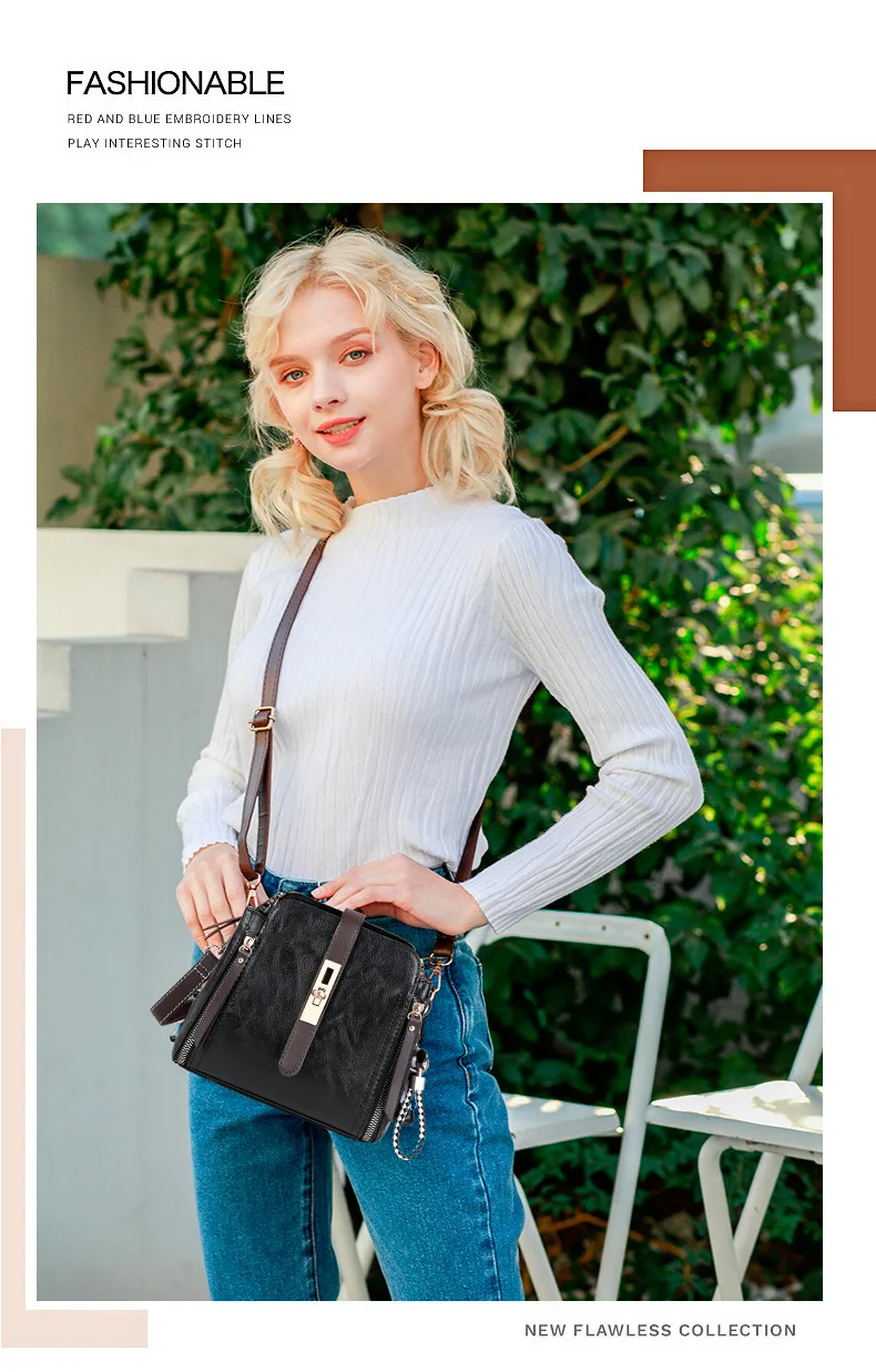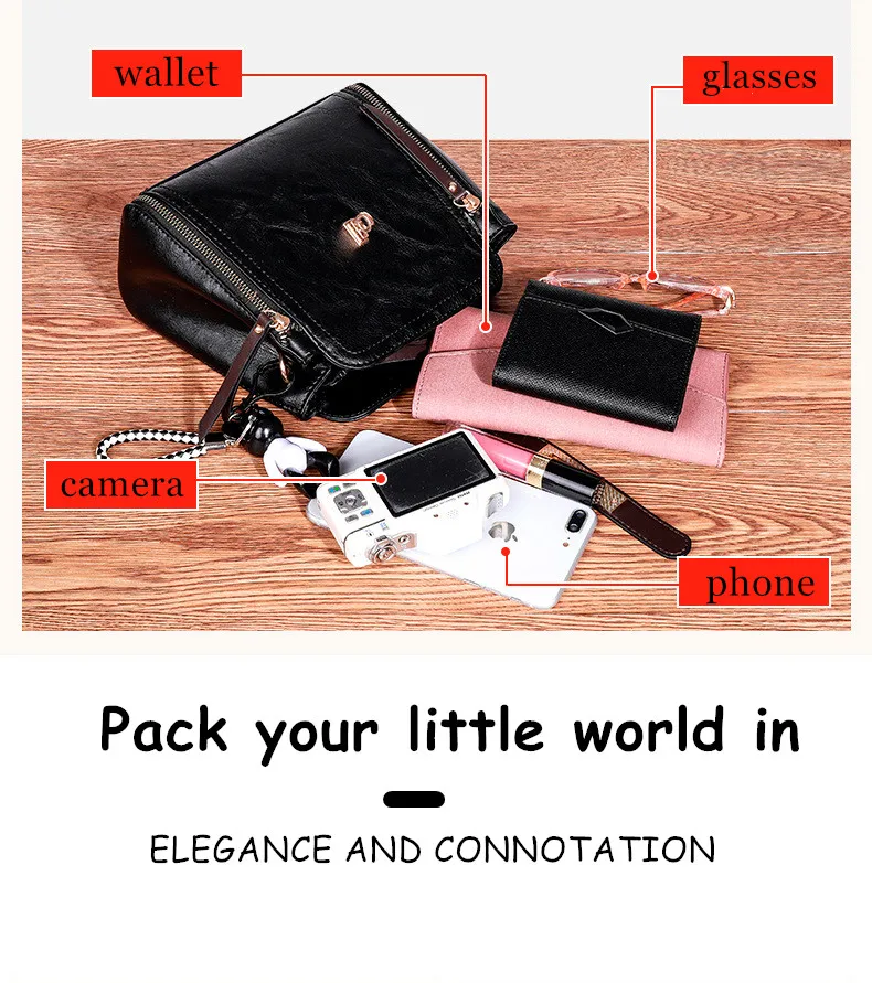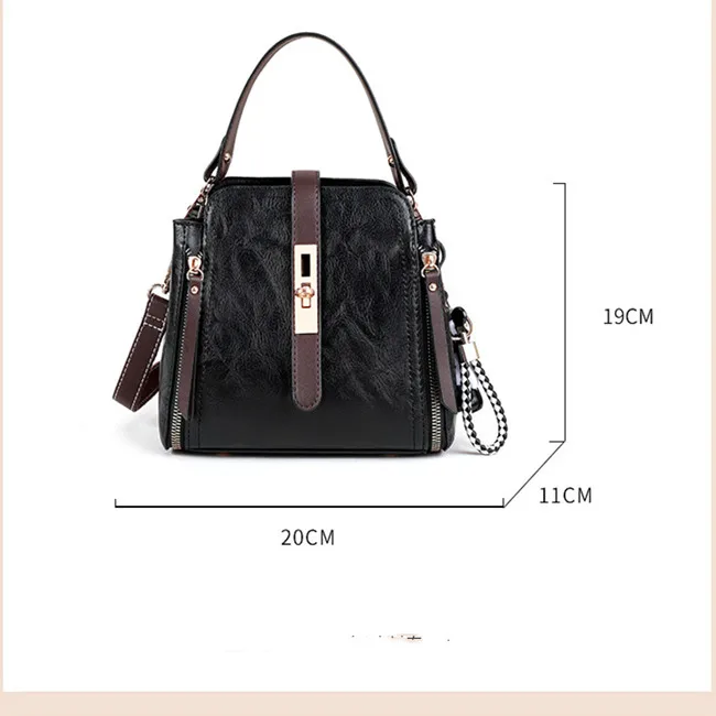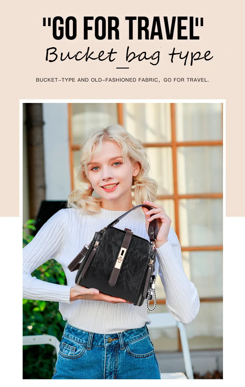 Women's Fashion Lychee Pattern Soft Leather Messenger Bag Color Matching Bucket Bag Large Capacity Portable Tote Bag