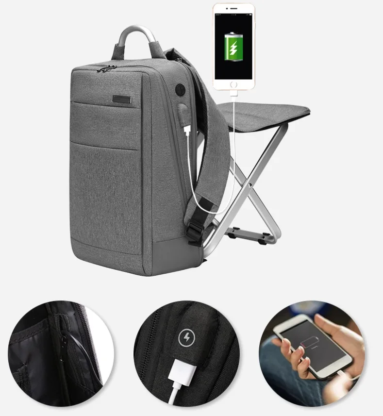 AMAZON HOT SALE Lager Capacity Waterproof Canvas Backpack Bag with Charging Port fit 15.6 Inch Laptop and chair