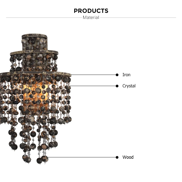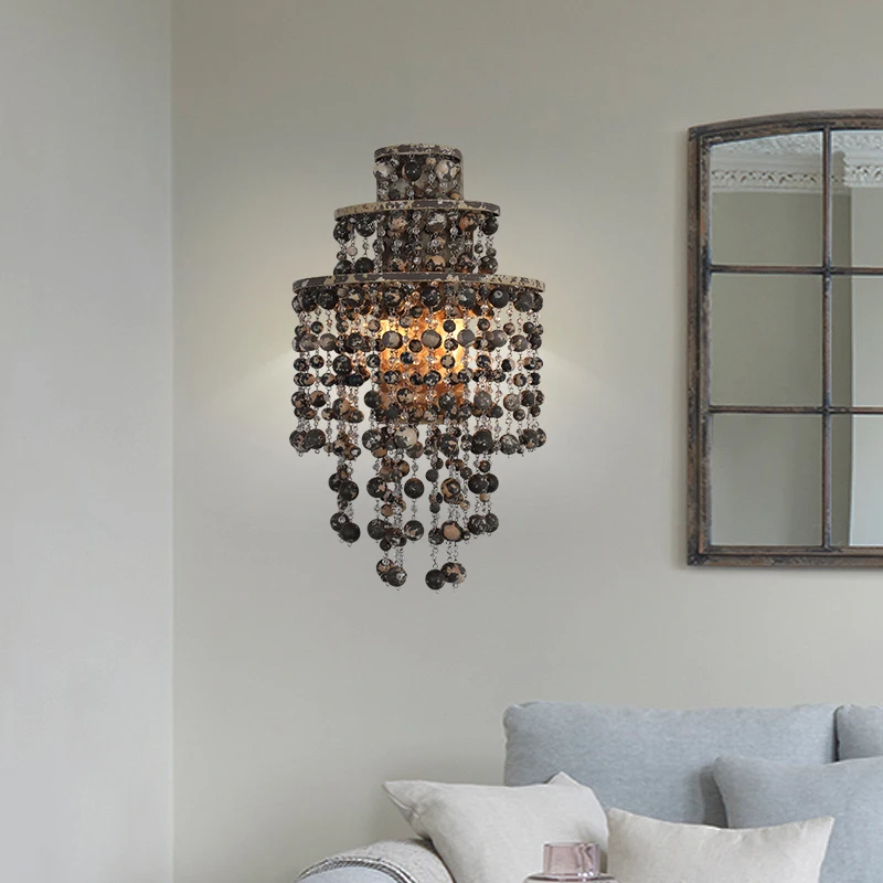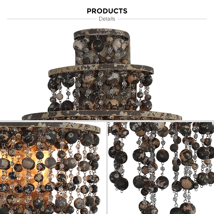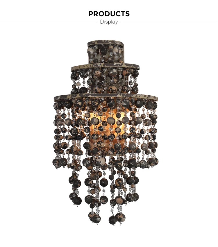 Farmhouse Vintage Industrial Decoration Iron Indoor Wooden Beads Rustic Wall Sconce