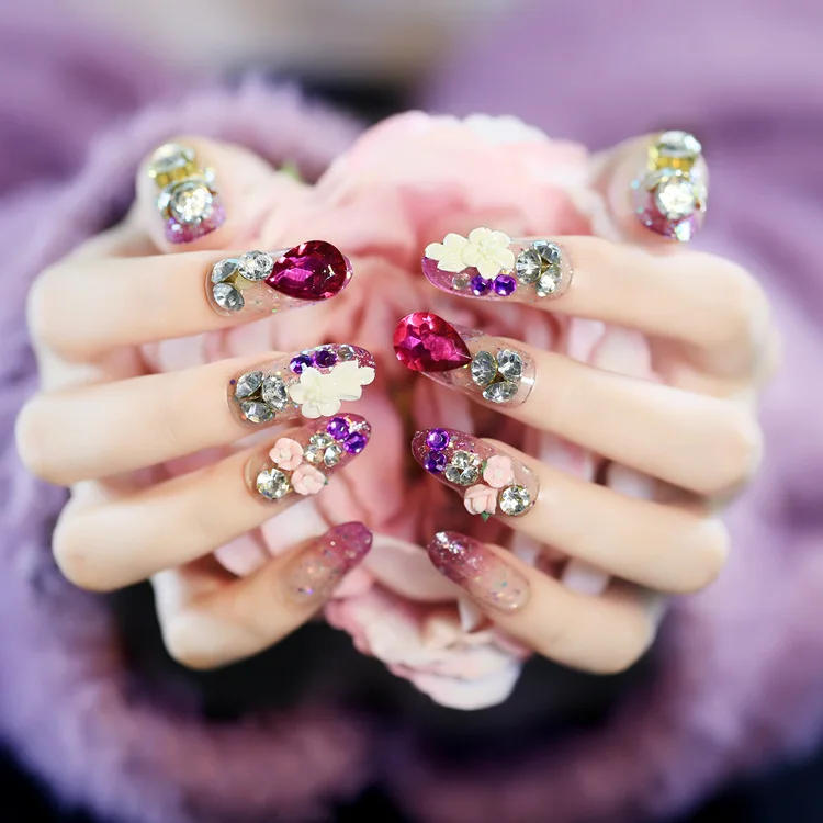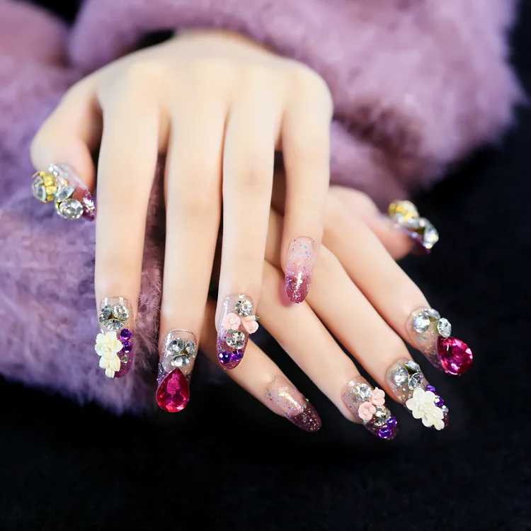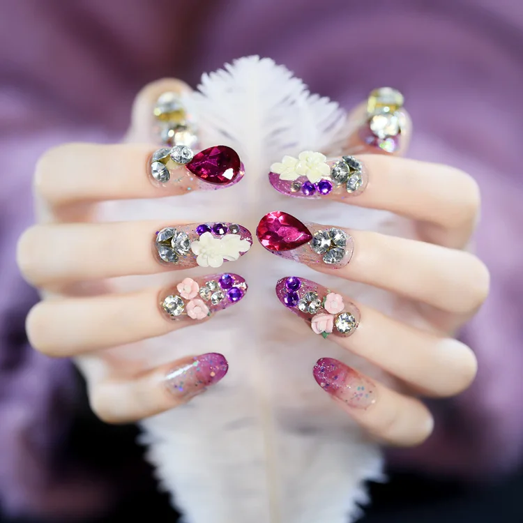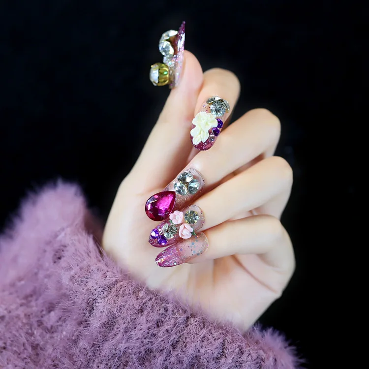 OMG Pearl Shiny pinky Glittery Extra Long Stiletto Faux Ongles Press on Nails With Sticker