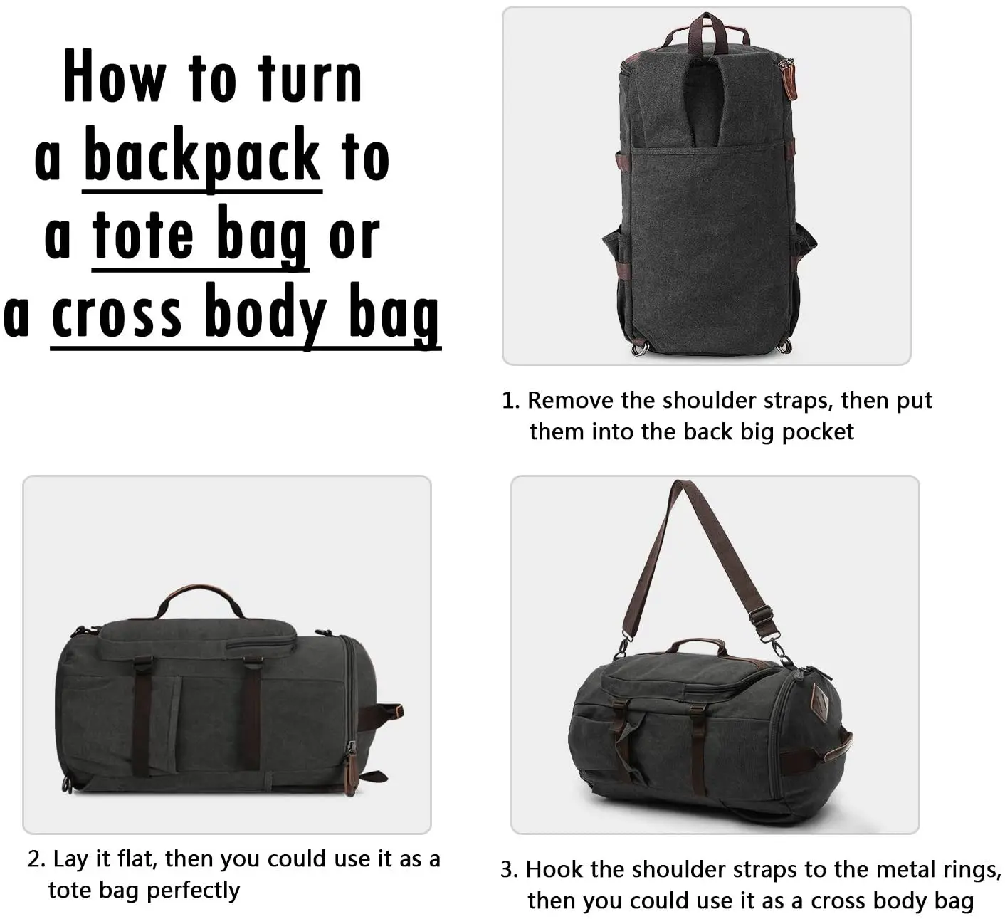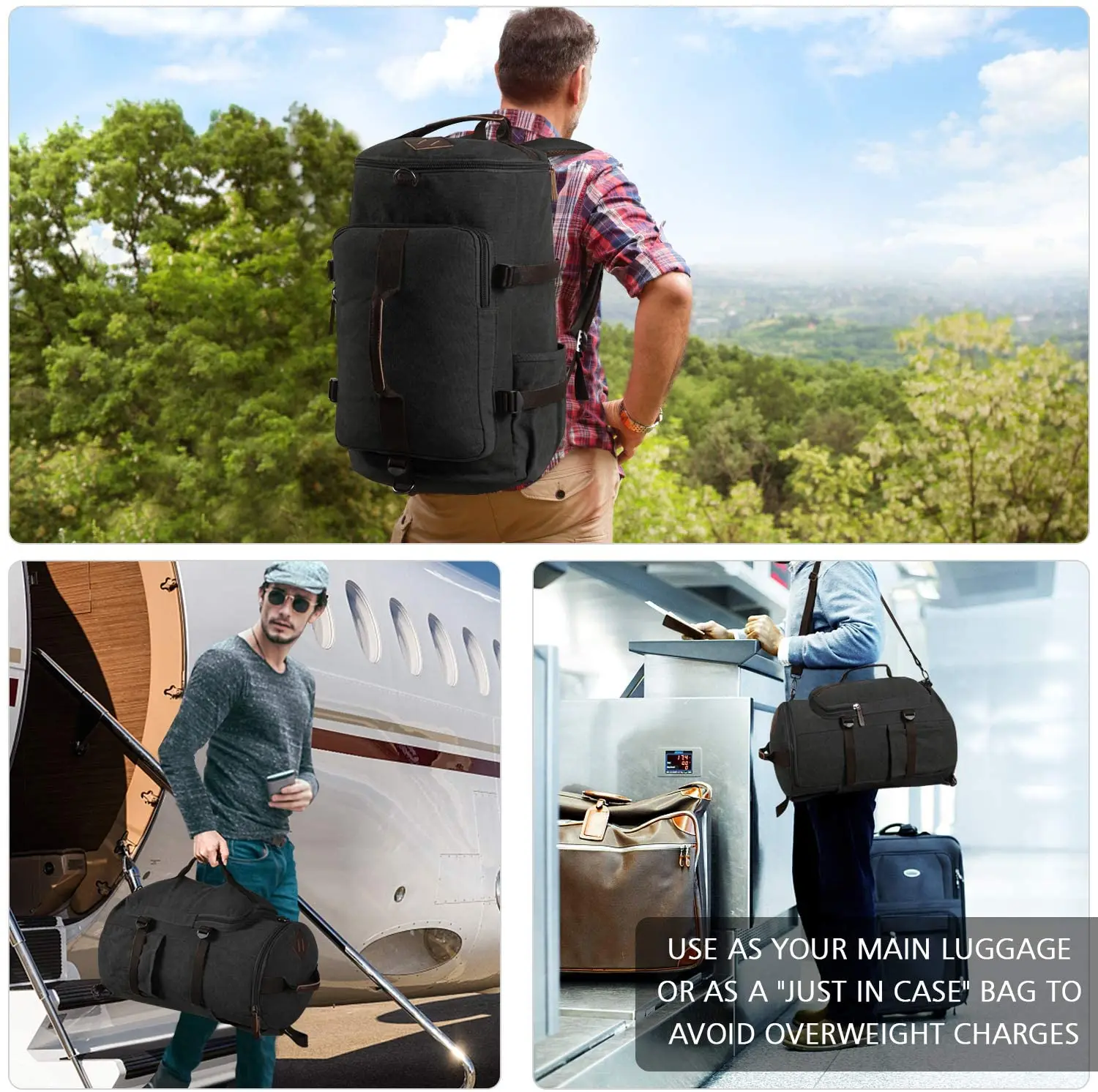 Travel Duffel Bag Waterproof Canvas Large Capacity Duffel Bag and Duffel backpack and carry on bag 3-In-1