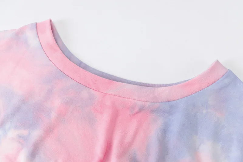 wholesale dropshipping 2021 summer new tie-dye print sexy round neck drawstring pleated club evening casual dresses for women