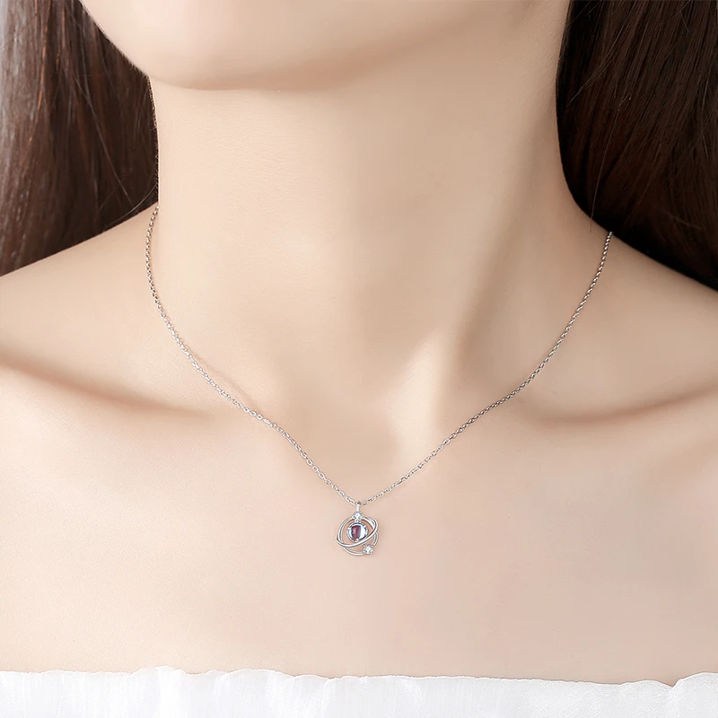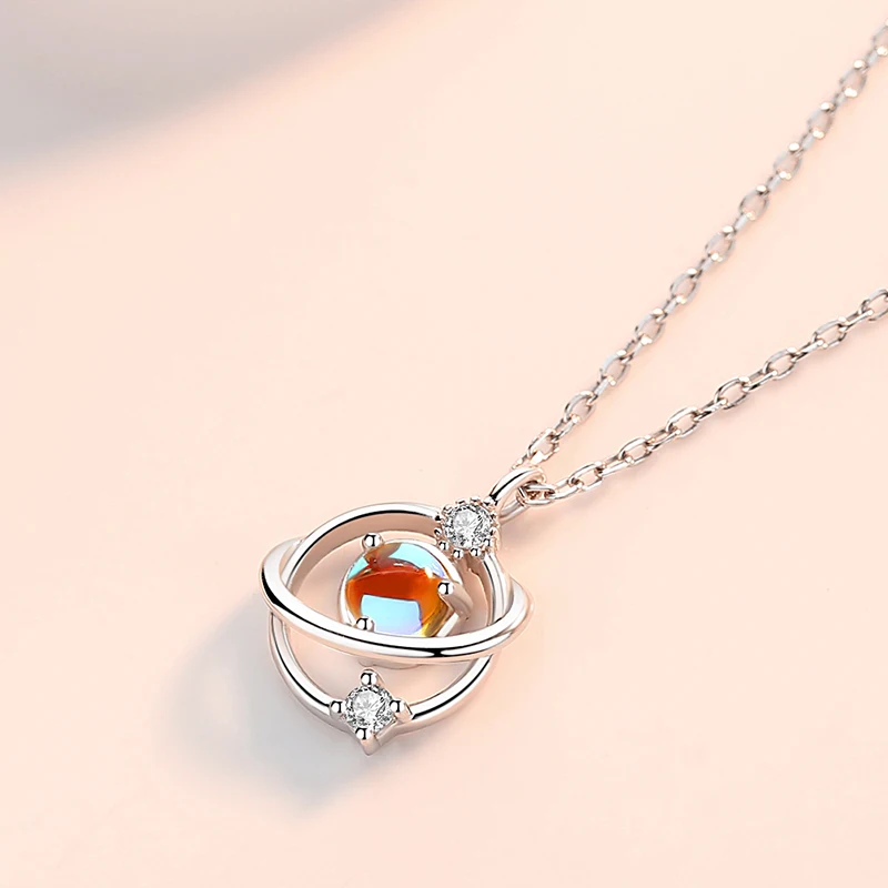 Wholesale fashion 925 sterling silver jewelry necklace exquisite fantasy planet pendant silver chain necklace for women NC3579