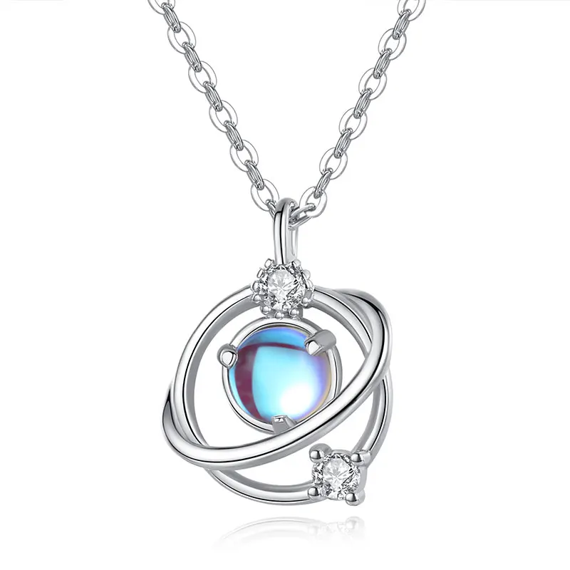 Wholesale fashion 925 sterling silver jewelry necklace exquisite fantasy planet pendant silver chain necklace for women