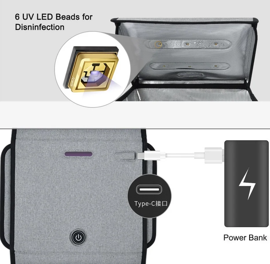 Wholesale Waterproof UV disinfection foldable portable disinfection bag baby bottles bags with 6 LED light